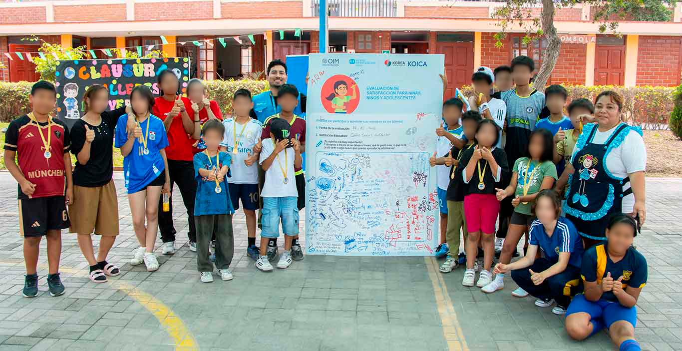 Implementamos esta iniciativa en el marco del proyecto de la Organización Internacional para las Migraciones (OIM) con el apoyo financiero de la Agencia de Cooperación Internacional de Corea (KOICA) y el Gobierno de la República de Corea. Su objetivo fue promover la cohesión social mediante actividades deportivas con enfoque intercultural, recreativo y de bienestar psicosocial.