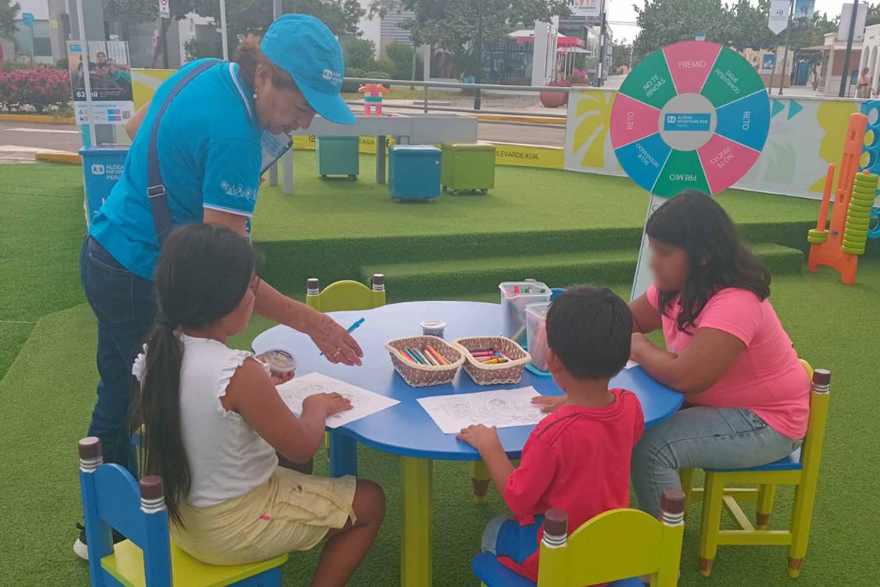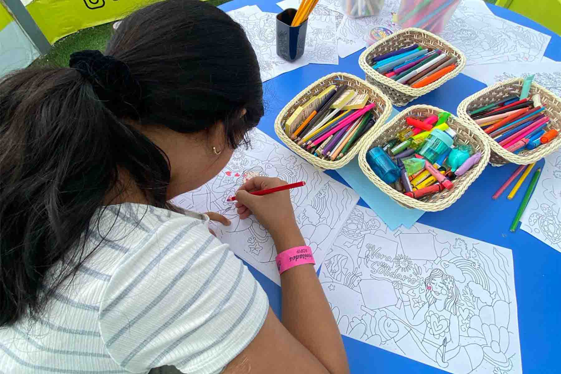 Para las niñas y niños, habilitamos un espacio de pintura, donde pudieron expresar libremente su creatividad con ilustraciones diseñadas exclusivamente para la campaña por nuestra Embajadora SOS, Flavia Macedo "Folkánica". Un momento especial que permitió conectarse con el arte y la solidaridad